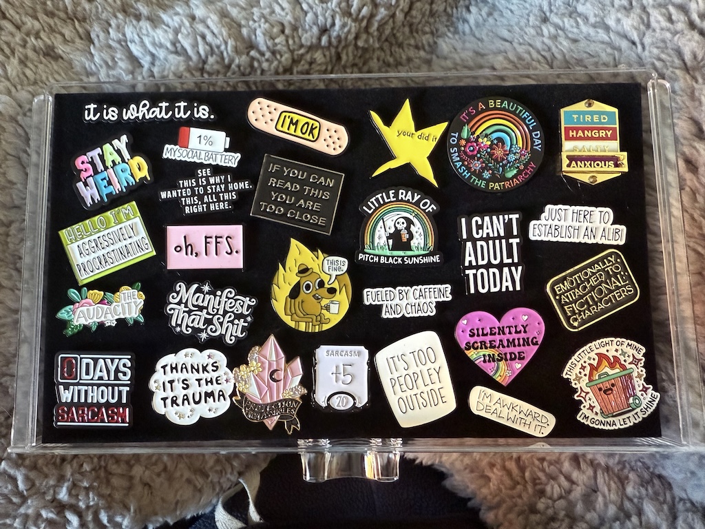 All these little pins say stuff about me. About who I am inside, about my sense of humor. About what is important to me.