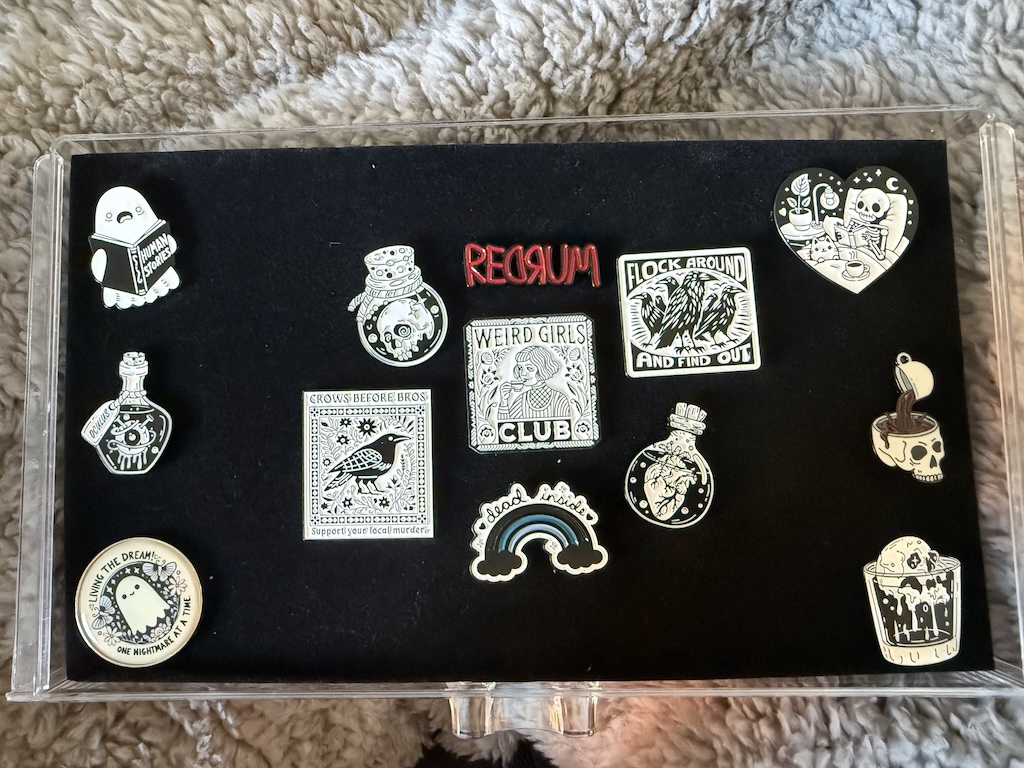 See, these are my little treasures. I haven’t brought myself to wear them yet—not because I am ashamed, nor because I don’t feel brave enough to support their messages to the world, but for a completely stupid reason: I’m not allowing myself to use the beautiful things. And for something like stickers, I could pardon myself, but for pins? Really?!