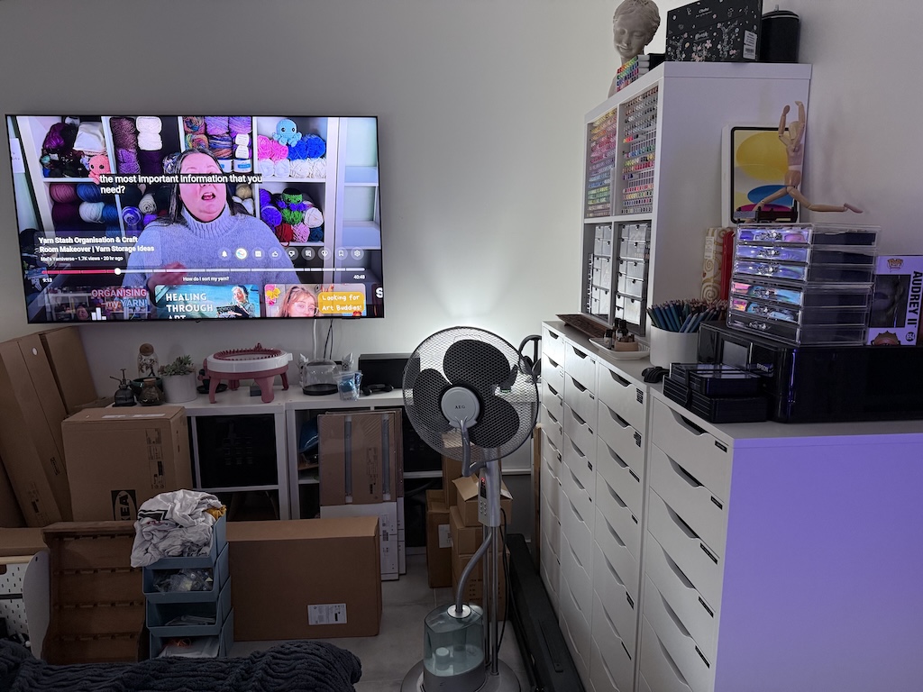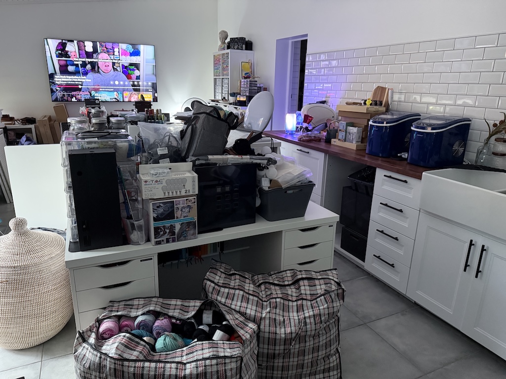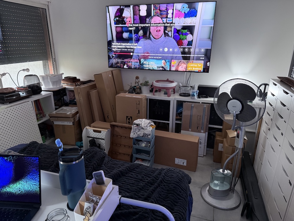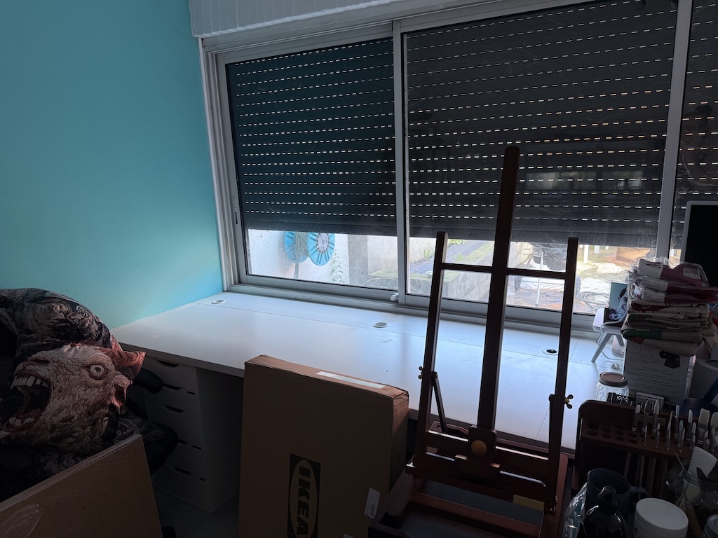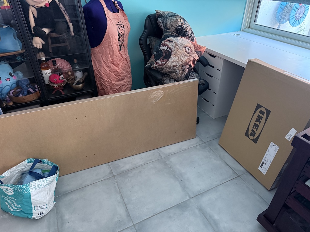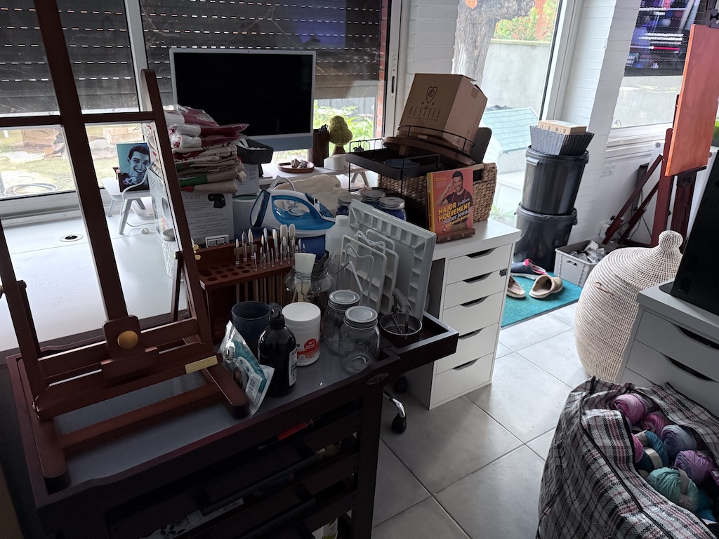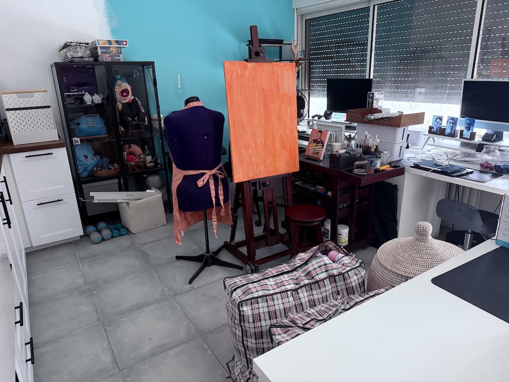 On the right, I have another desk that is supposed to be a working space. For now, I can’t work-work, but I can still use it for projects in the meantime. And then, in 2027, hopefully it will be used as intended.