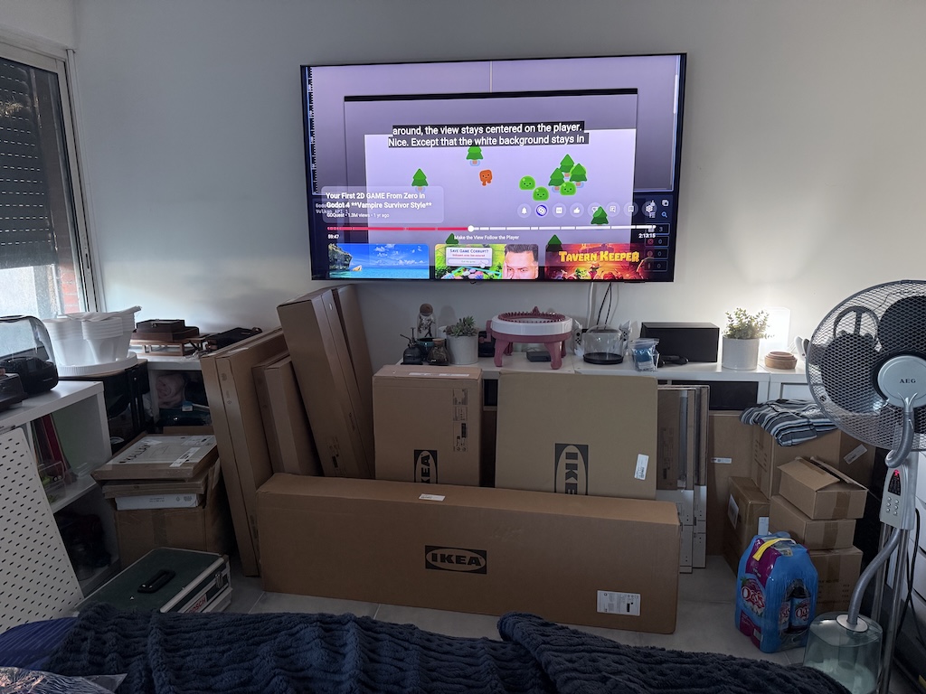 On the furniture in this part of the room, I will also have countertops. The countertops will have electric plugs (most of them hidden) so that I can leave my gaming consoles, vinyl record player, etc. plugged in. I also got myself a Govee table lamp, and Govee TV backlight for ambiance. It’ll be the last part of the improvement: decorating and making the Artelier cozy.