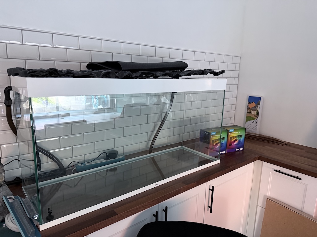 It’s time! Our handyman has arrived, and is going to start working on the aquarium. Yay!